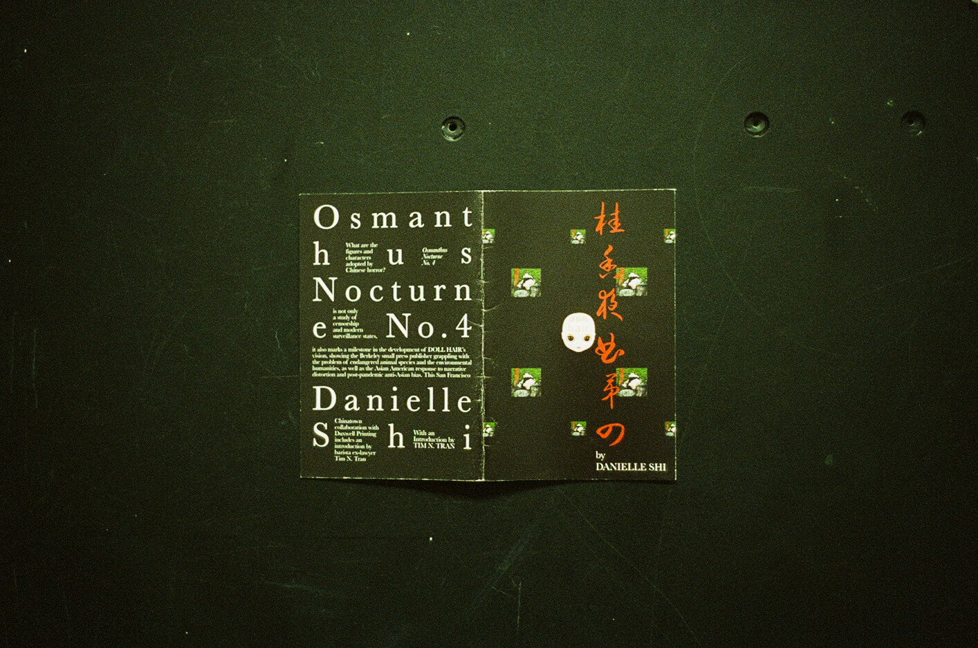 A collaboration with SF Chinatown’s local printer Duxwell Printing and tabled with the Chinese Culture Center, Osmanthus Nocturne No. 4 【桂香夜曲第四】is a Chinese horror tribute to the vulnerable diplomatic pandas of the Chengdu Research Base of Giant Panda Breeding in Sichuan, China. With a foreword by Tim Tran, the apparently tongue-in-cheek story takes a closer examination of the nebulous international art world, couching its criticisms in a larger argument about the primacy of the surveillance state both at home and abroad, and its overt influence on how ideas are exchanged.